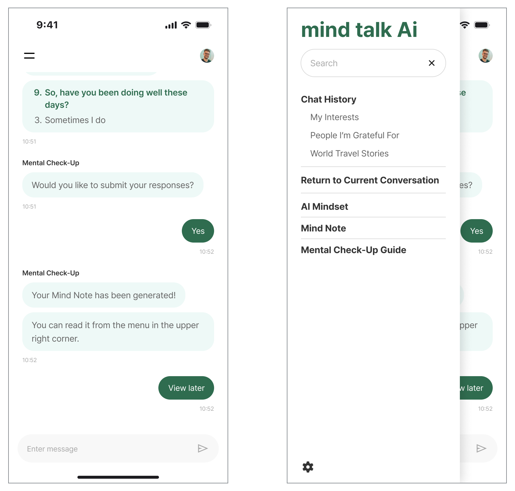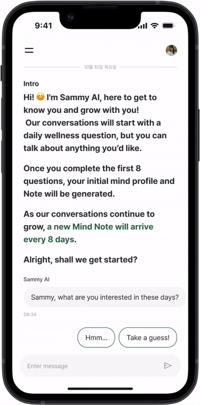 I designed an intuitive chat UI to provide a natural conversation experience, helping users feel as though they are having an intimate dialogue with their other self.